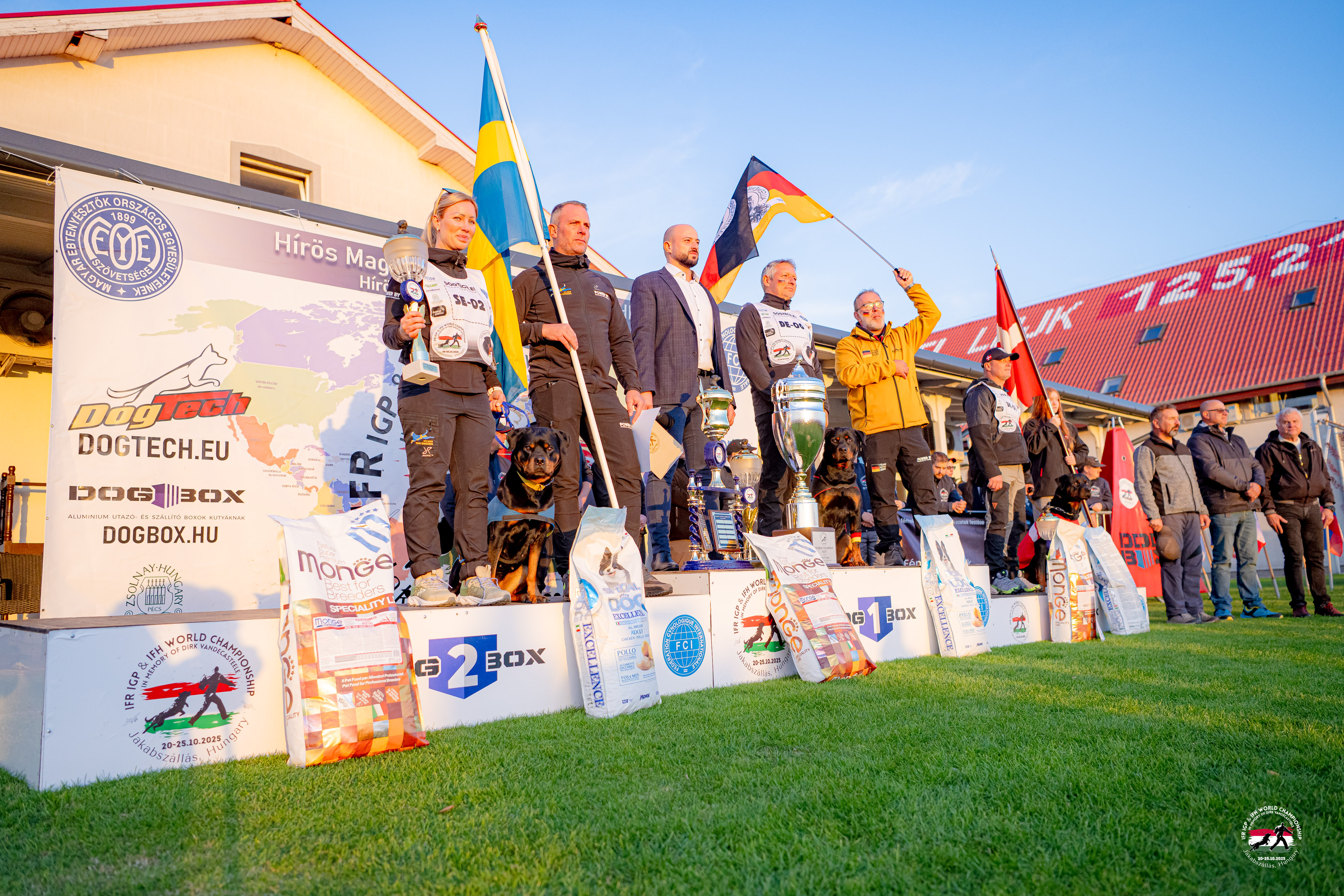 Both World Champions obtained exactly the same results, so with reference to the regulations for the organization of the FCI World Championship for Utility Dogs, they deserve and share the first place and the title.